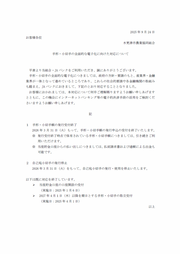 手形・小切手の全面的な電子化に向けた対応についてのご案内!