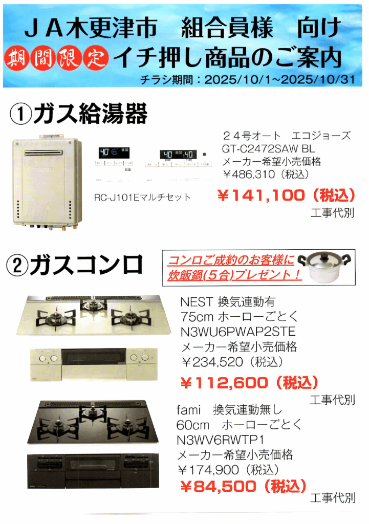期間限定 ガス機器イチ押し商品のご案内!