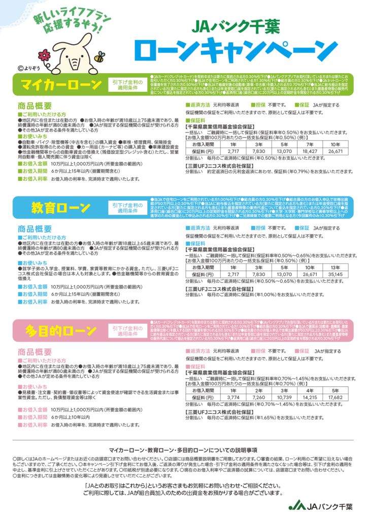 JAバンク千葉ローンキャンペーンのお知らせ!