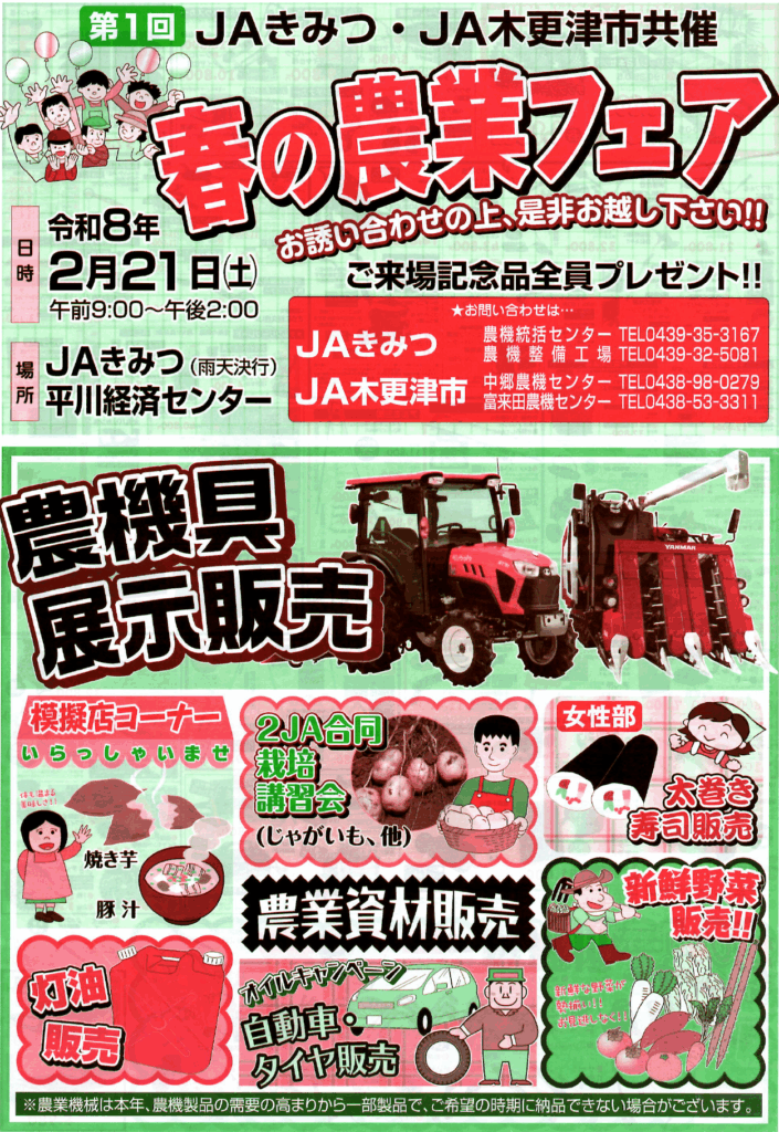 第1回JAきみつ・JA木更津市共催 春の農業フェアーのお知らせ!