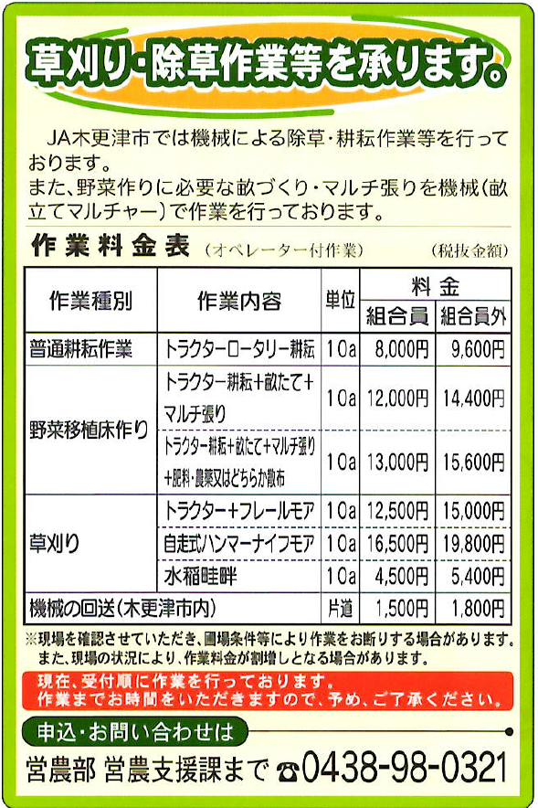 令和7年農作業受委託料金のご案内